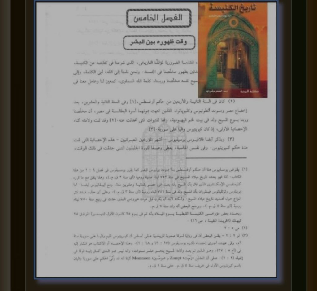 No entanto, o padre que traduziu o livro para o árabe (Marcos Daoud) comenta, em nota de rodapé, várias opiniões sobre o nascimento de Cristo. Alguns Pais da Igreja afirmam que ele nasceu em 2 a.C., como Ácimo de Alexandria e Epifânio; outros dizem 3 a.C., como Irineu e Tertuliano; há ainda quem diga 7 a.C.. O padre acrescenta: